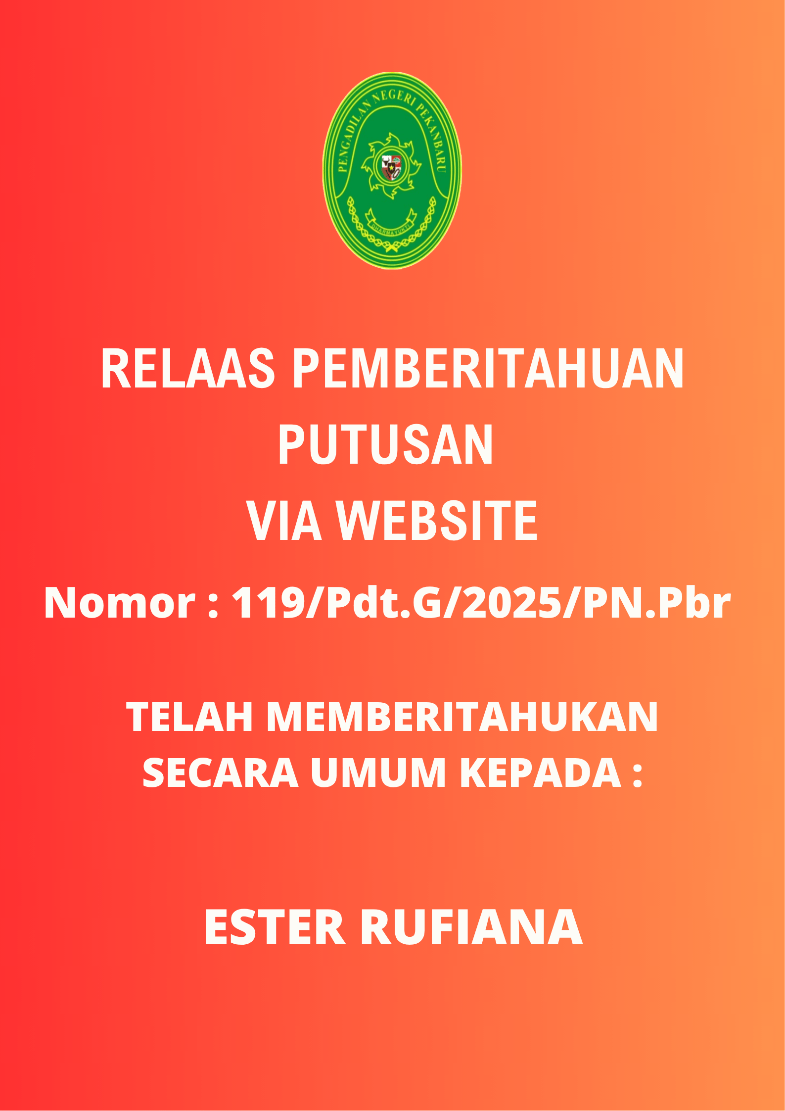 | 73/Pdt.G/2026/PN.Pbr | RENDY PRAYUDHI SAPUTRA | |||